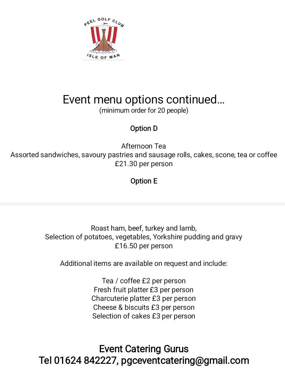 Event catering is a speciality, with packages starting from just £10.80 per person. See the above menu for further information.