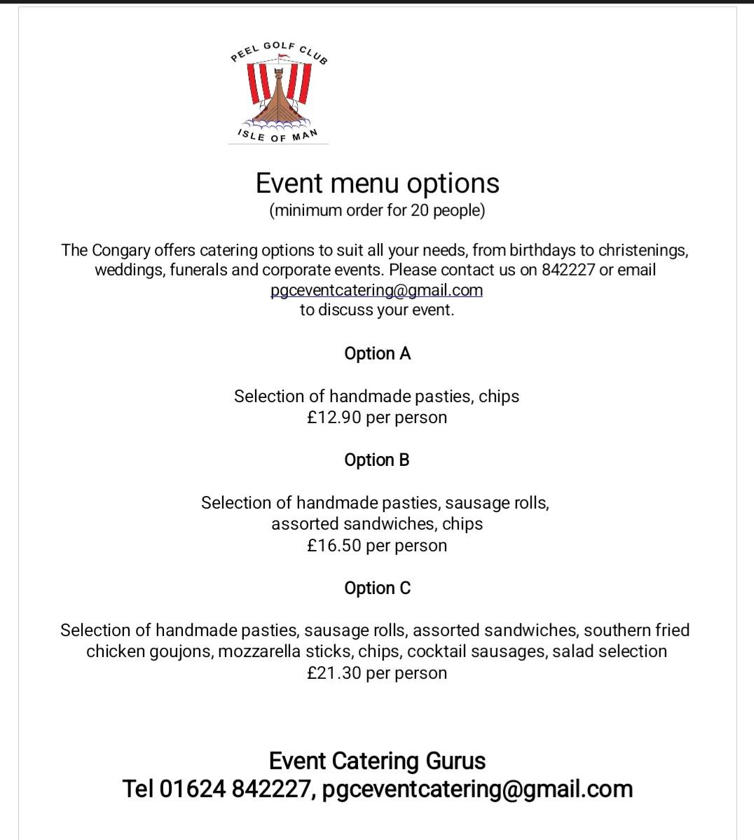For all Congary related bookings and enquires please call 842227 or email pgceventcatering@gmail.com